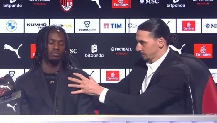 别弯腰坐直了!伊布在草莓视频成人影院发布会上纠正米兰新援邦多的坐姿